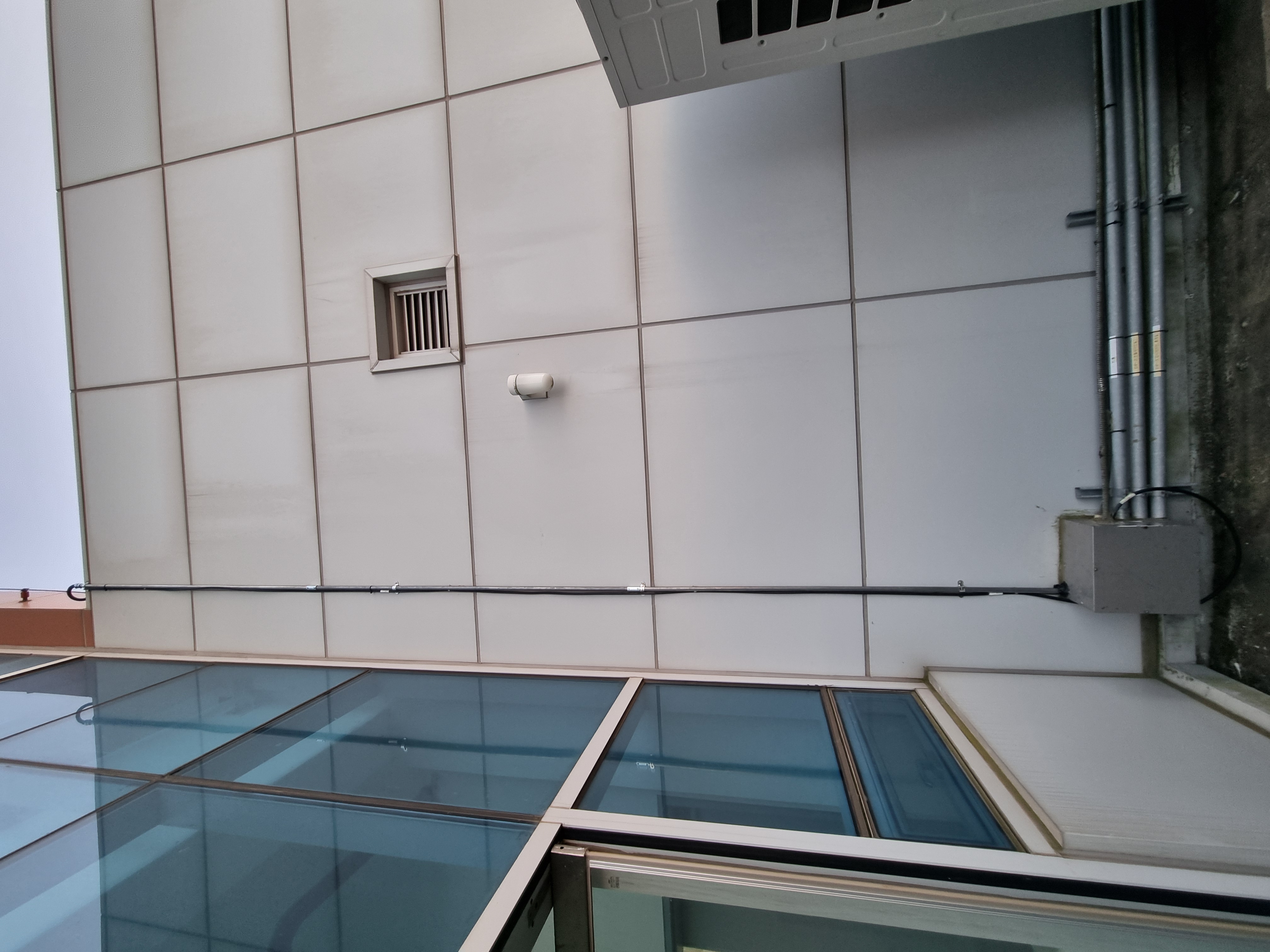 - 옥상~2층 진입루트 확인(사각박스의 경우 새들처리 해가며 측면 벽타고 이동 필요, 직하형인 에어컨 배관 옆 틈이 이상적).